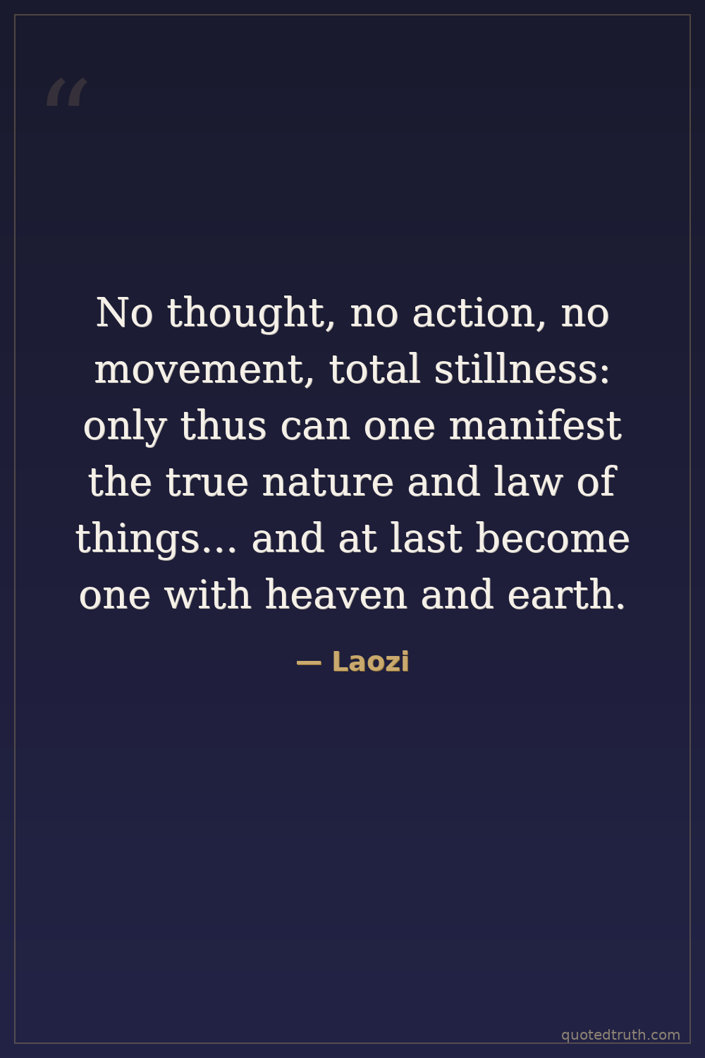 No thought, no action, no movement, total stillness: only thus can one manifest the true nature and law of things... and at last become one with heaven and earth.