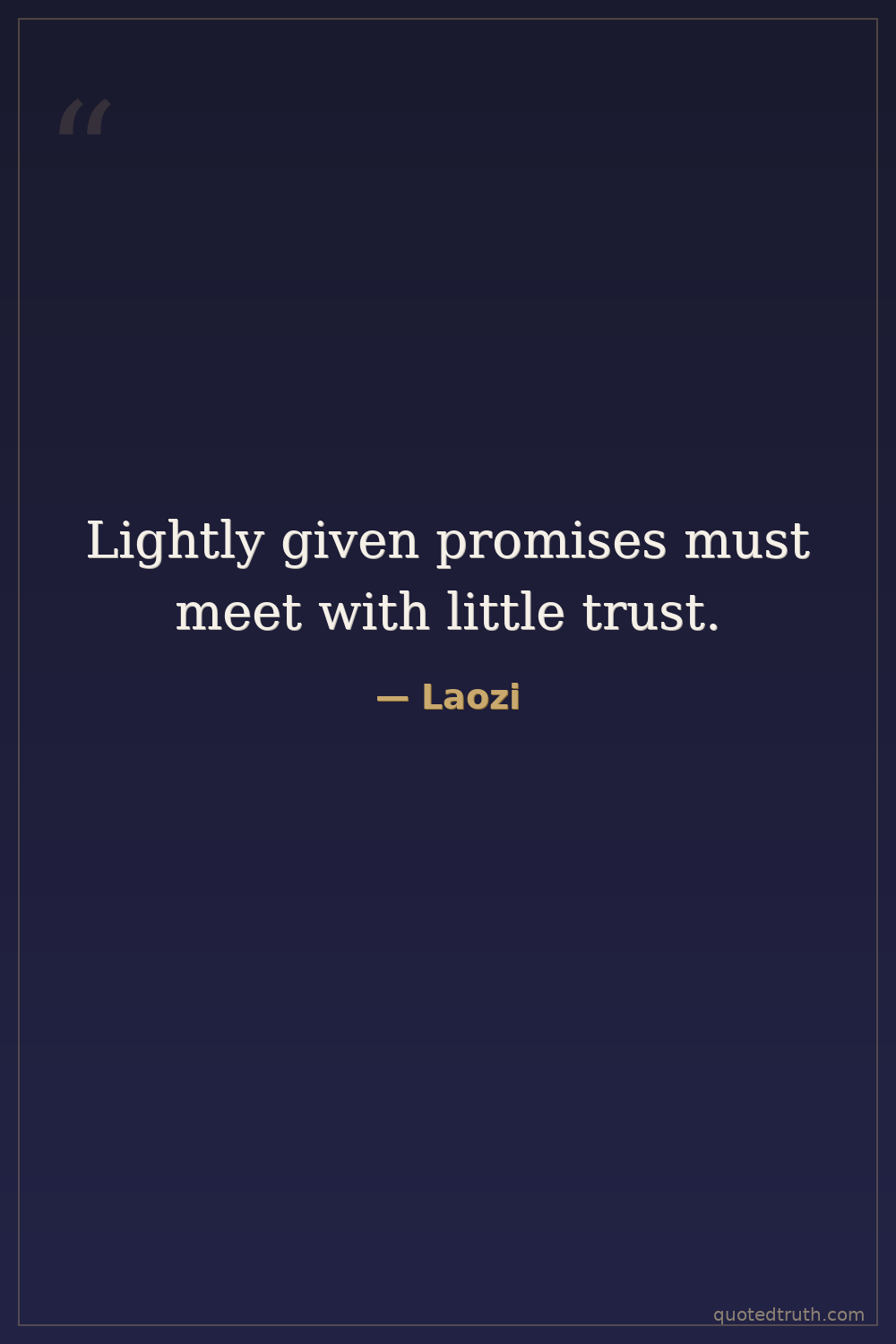 Strange & Unusual"One who makes promises rashly rarely keeps good faith; One who is in the habit of considering things easy meets with frequent difficulties."