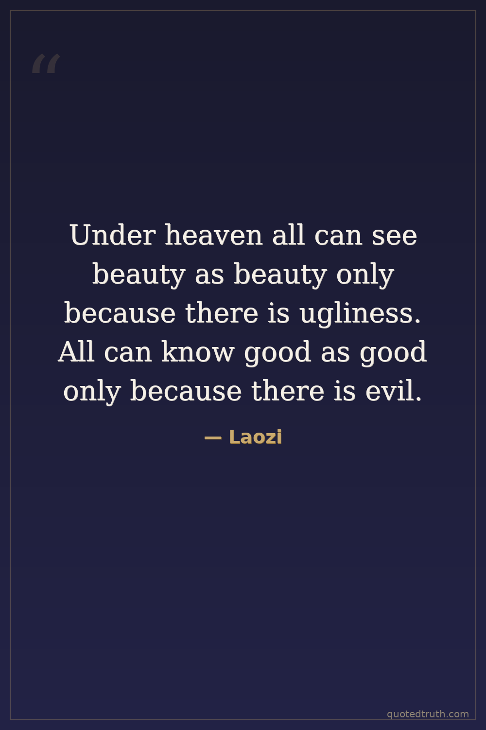 Under heaven all can see beauty as beauty only because there is ugliness. All can know good as good only because there is evil.