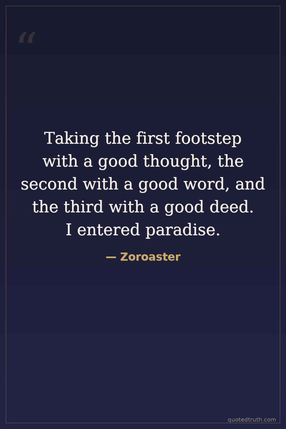 Taking the first footstep with a good thought, the second with a good word, and the third with a good deed. I entered paradise.
