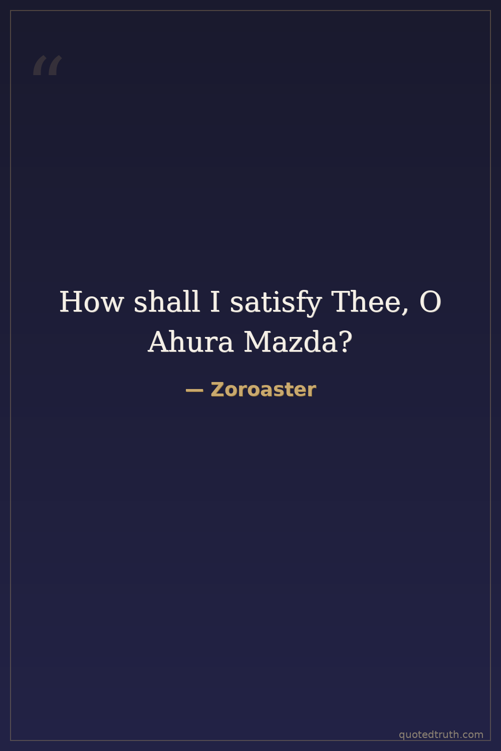 How shall I satisfy Thee, O Ahura Mazda?