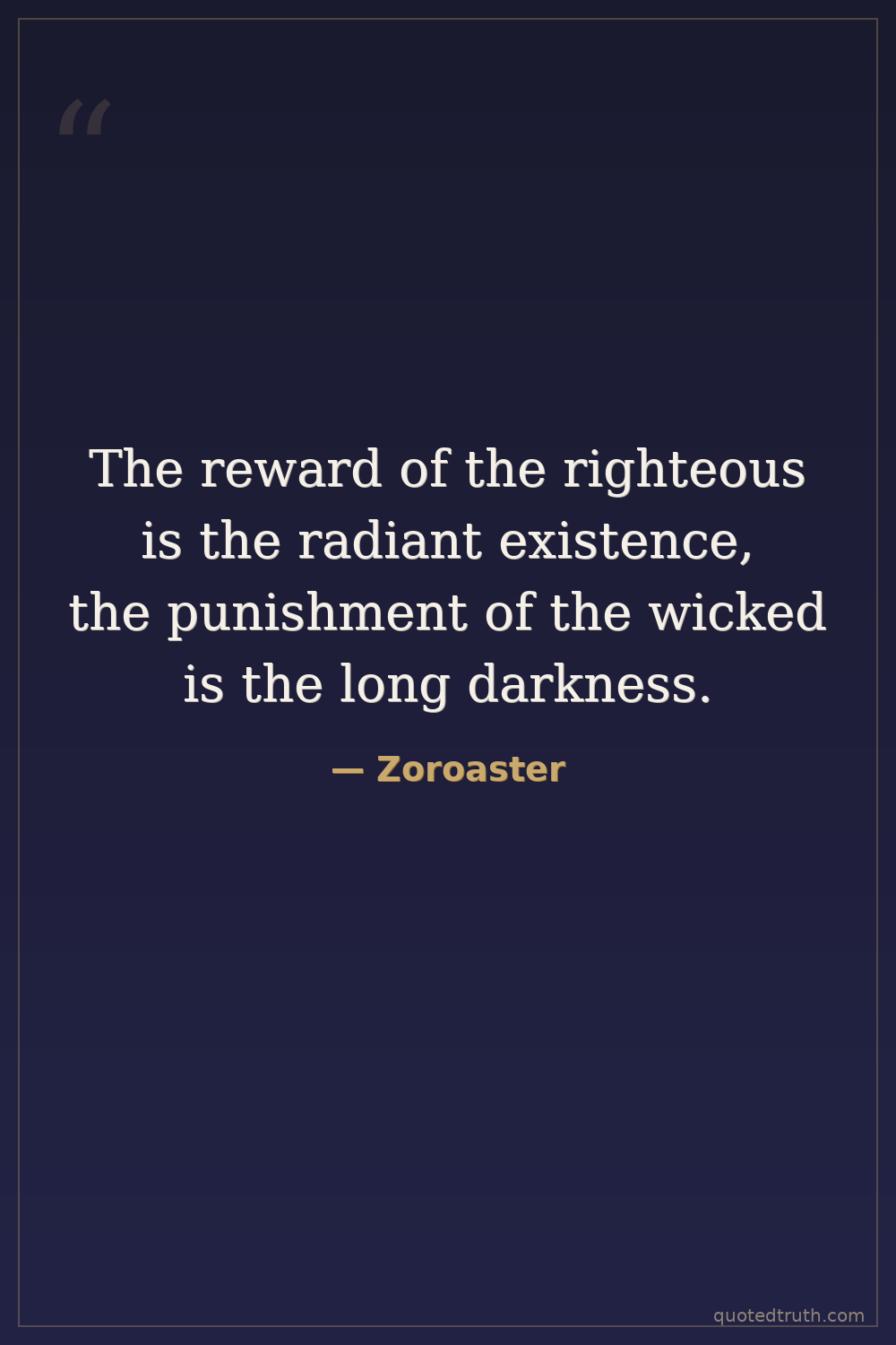 The reward of the righteous is the radiant existence, the punishment of the wicked is the long darkness.