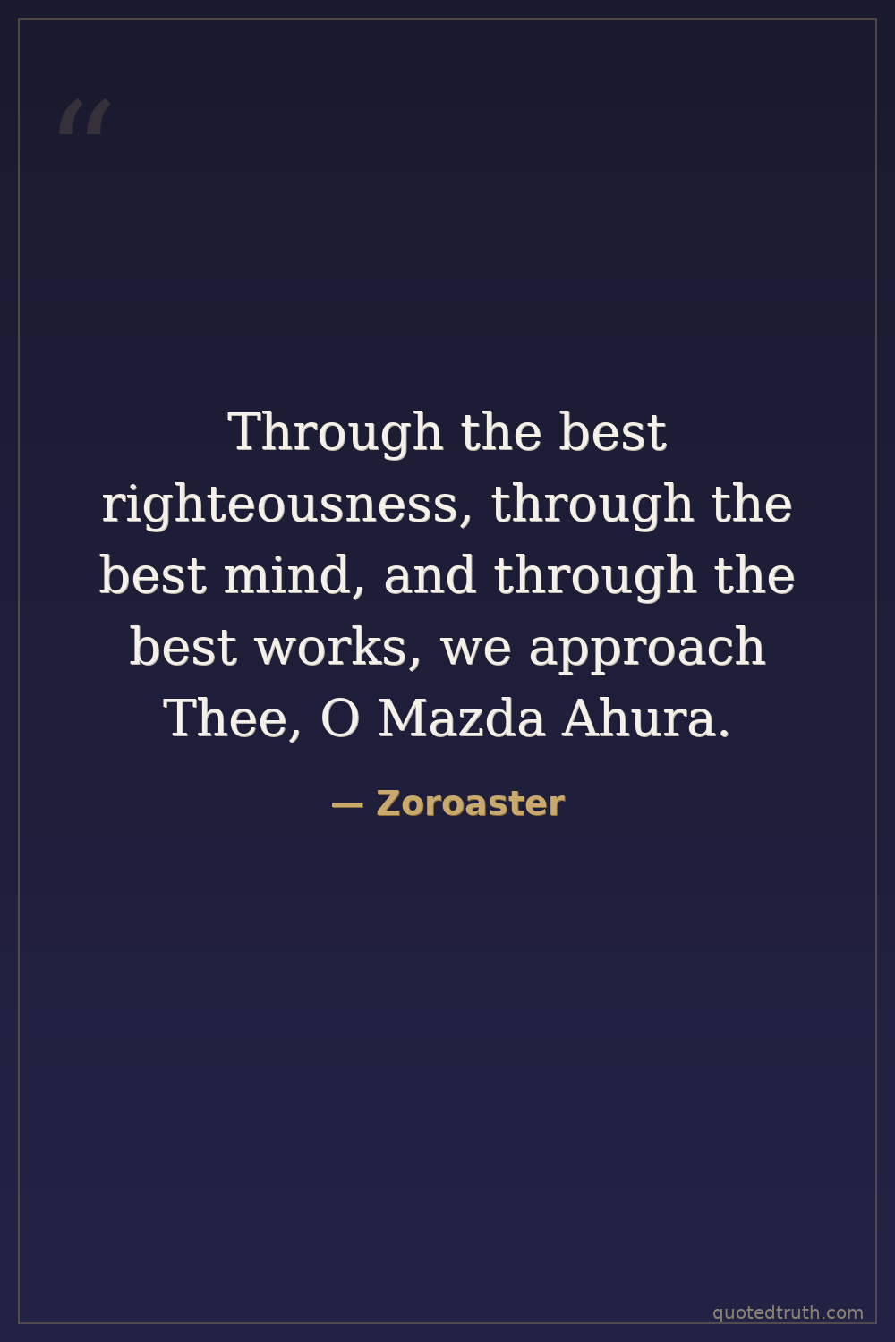 Through the best righteousness, through the best mind, and through the best works, we approach Thee, O Mazda Ahura.