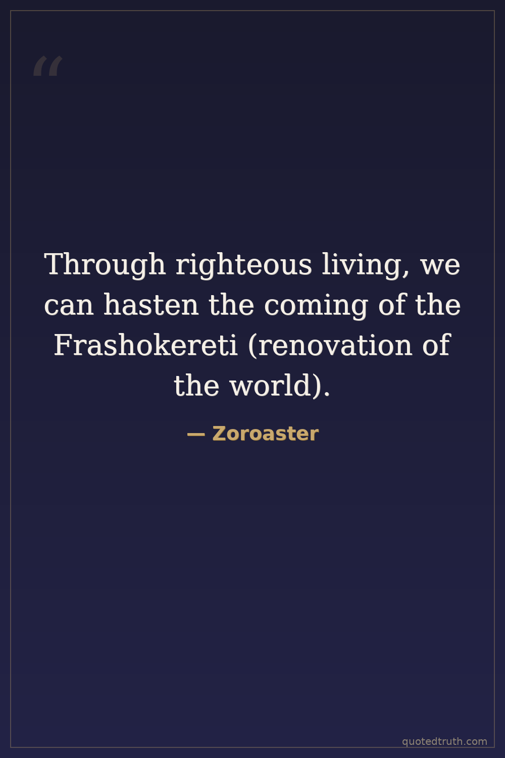 Through righteous living, we can hasten the coming of the Frashokereti (renovation of the world).