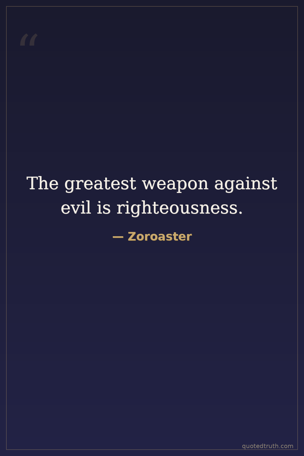 The greatest weapon against evil is righteousness.