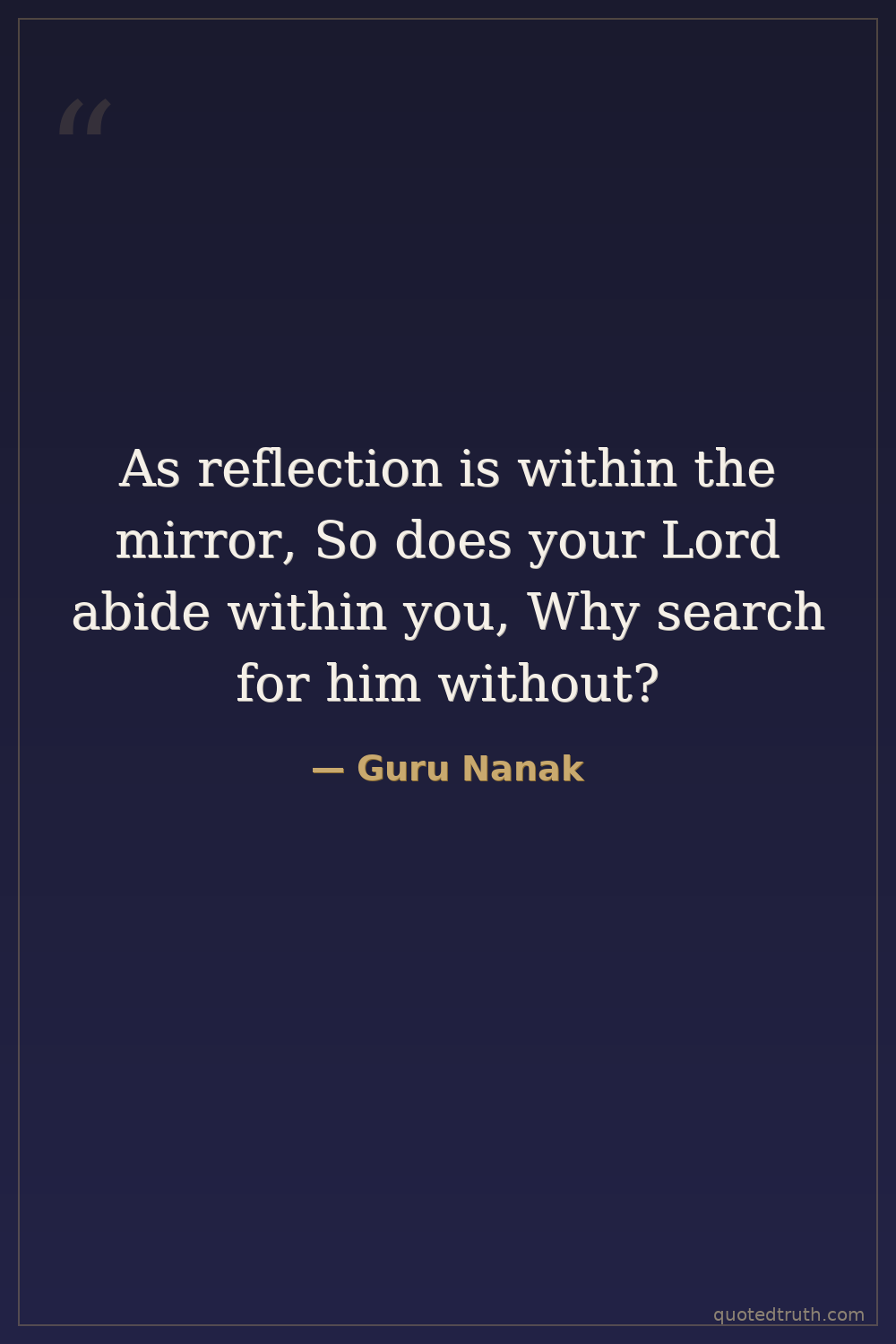 As reflection is within the mirror, So does your Lord abide within you, Why search for him without?