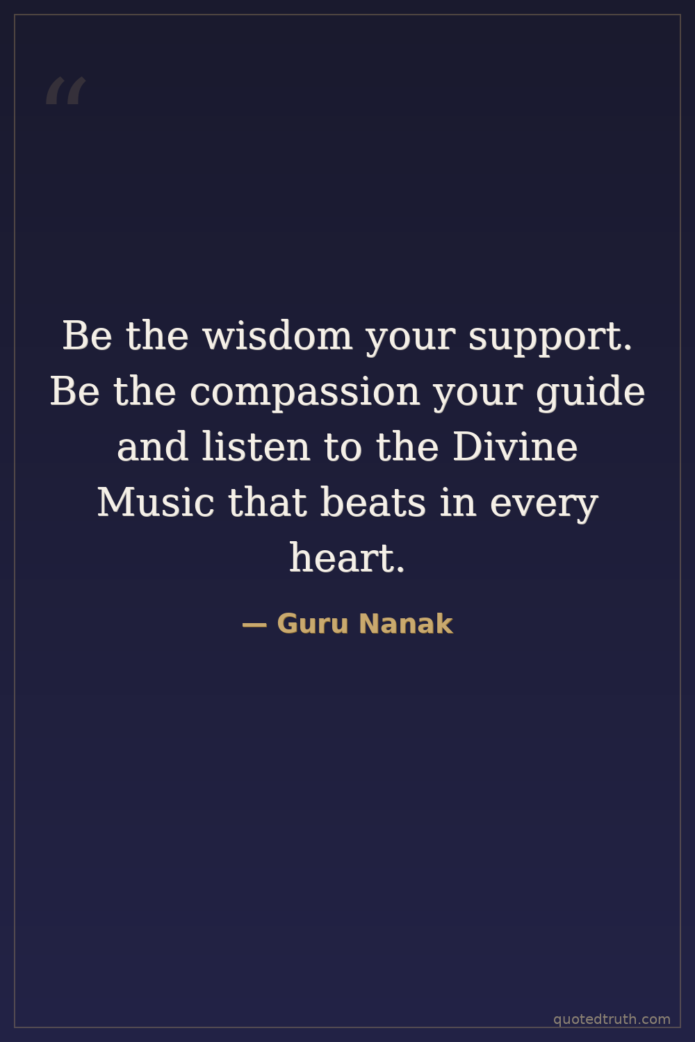 Be the wisdom your support. Be the compassion your guide and listen to the Divine Music that beats in every heart.