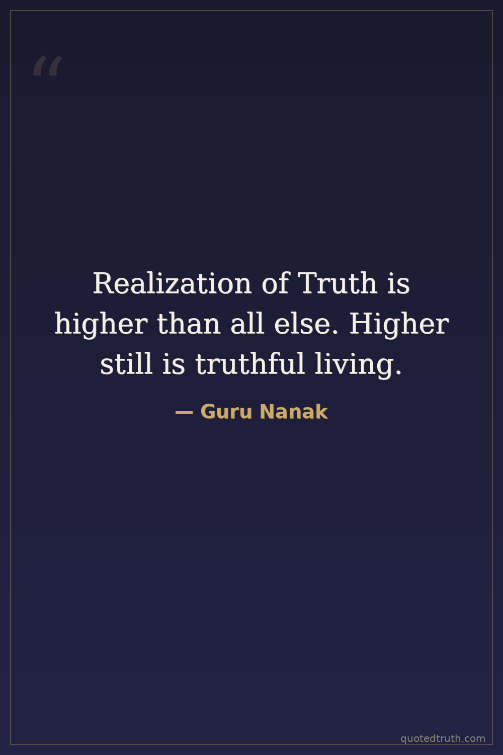 Realization of Truth is higher than all else. Higher still is truthful living.