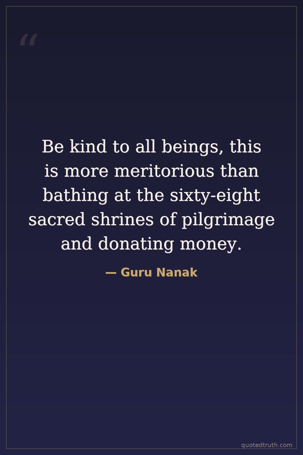 Be kind to all beings, this is more meritorious than bathing at the sixty-eight sacred shrines of pilgrimage and donating money.