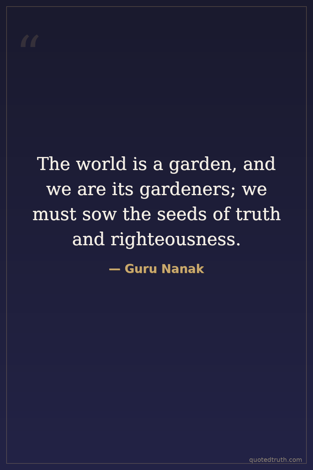 The world is a garden, and we are its gardeners; we must sow the seeds of truth and righteousness.