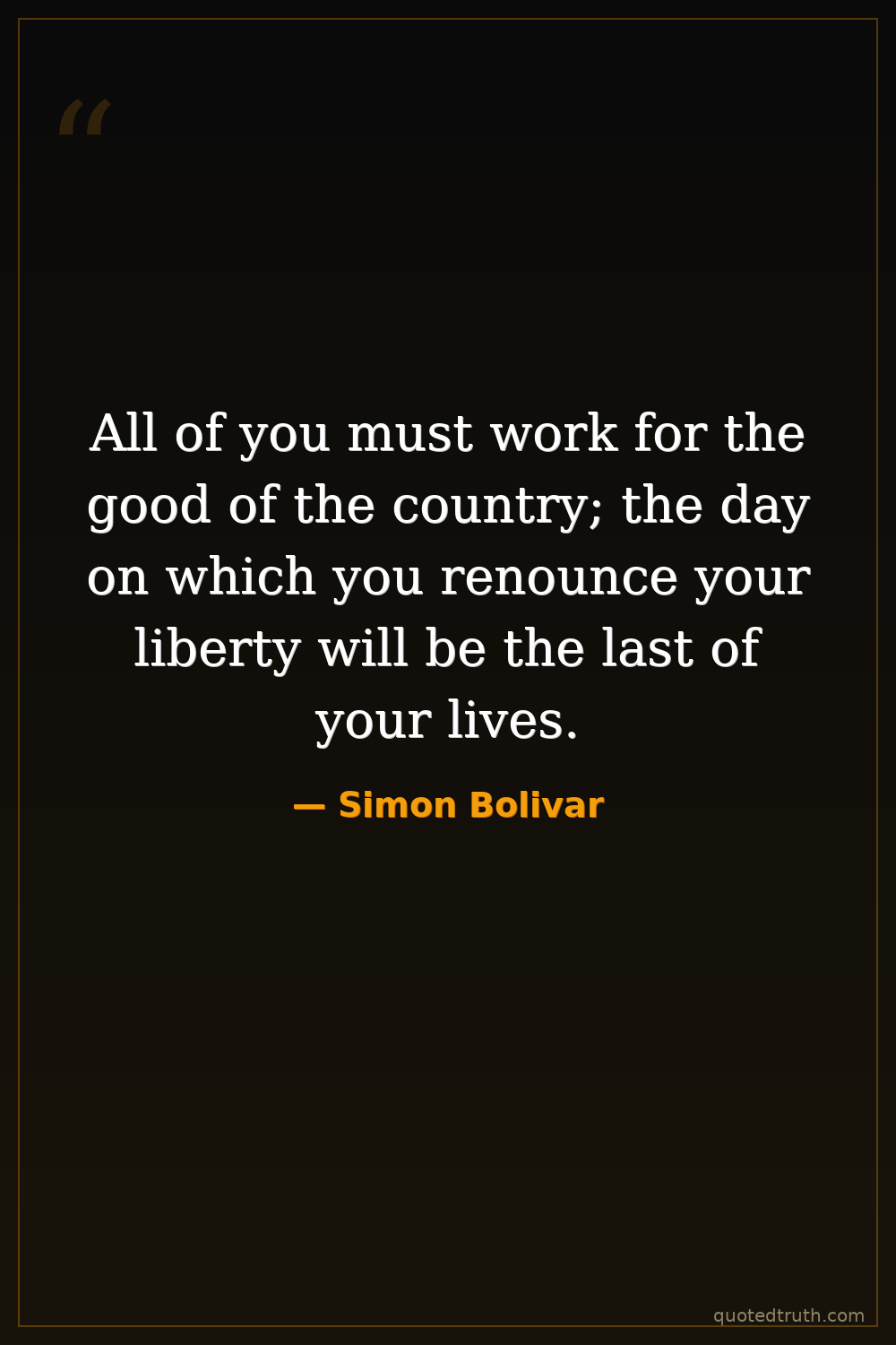 All of you must work for the good of the country; the day on which you renounce your liberty will be the last of your lives.