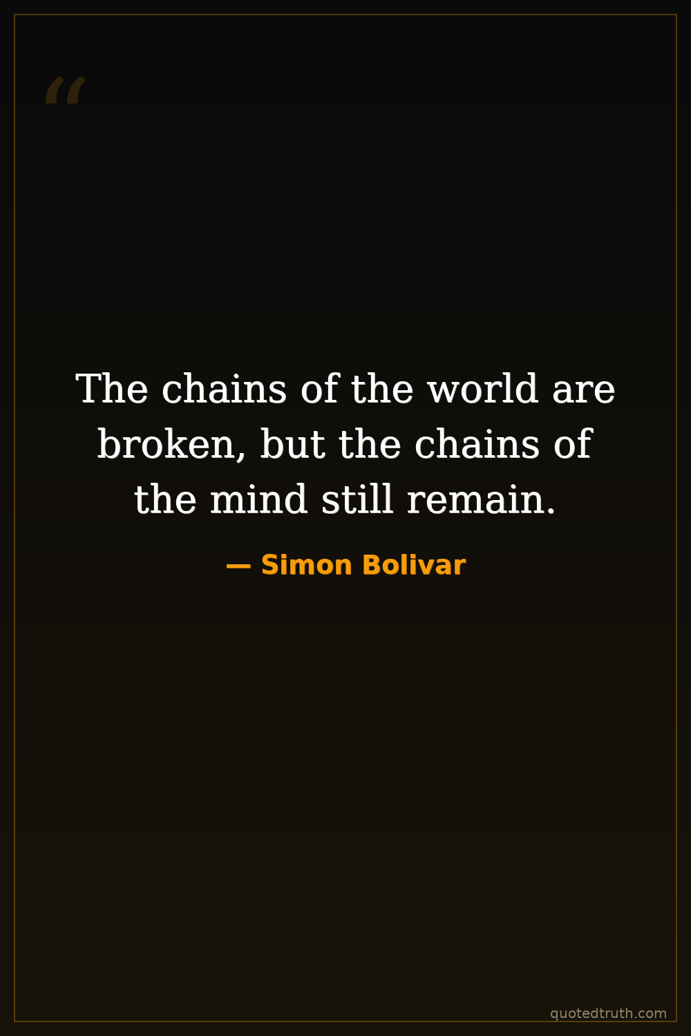 The chains of the world are broken, but the chains of the mind still remain.