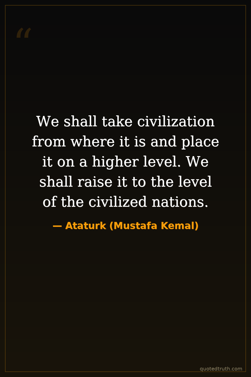 We shall take civilization from where it is and place it on a higher level. We shall raise it to the level of the civilized nations.