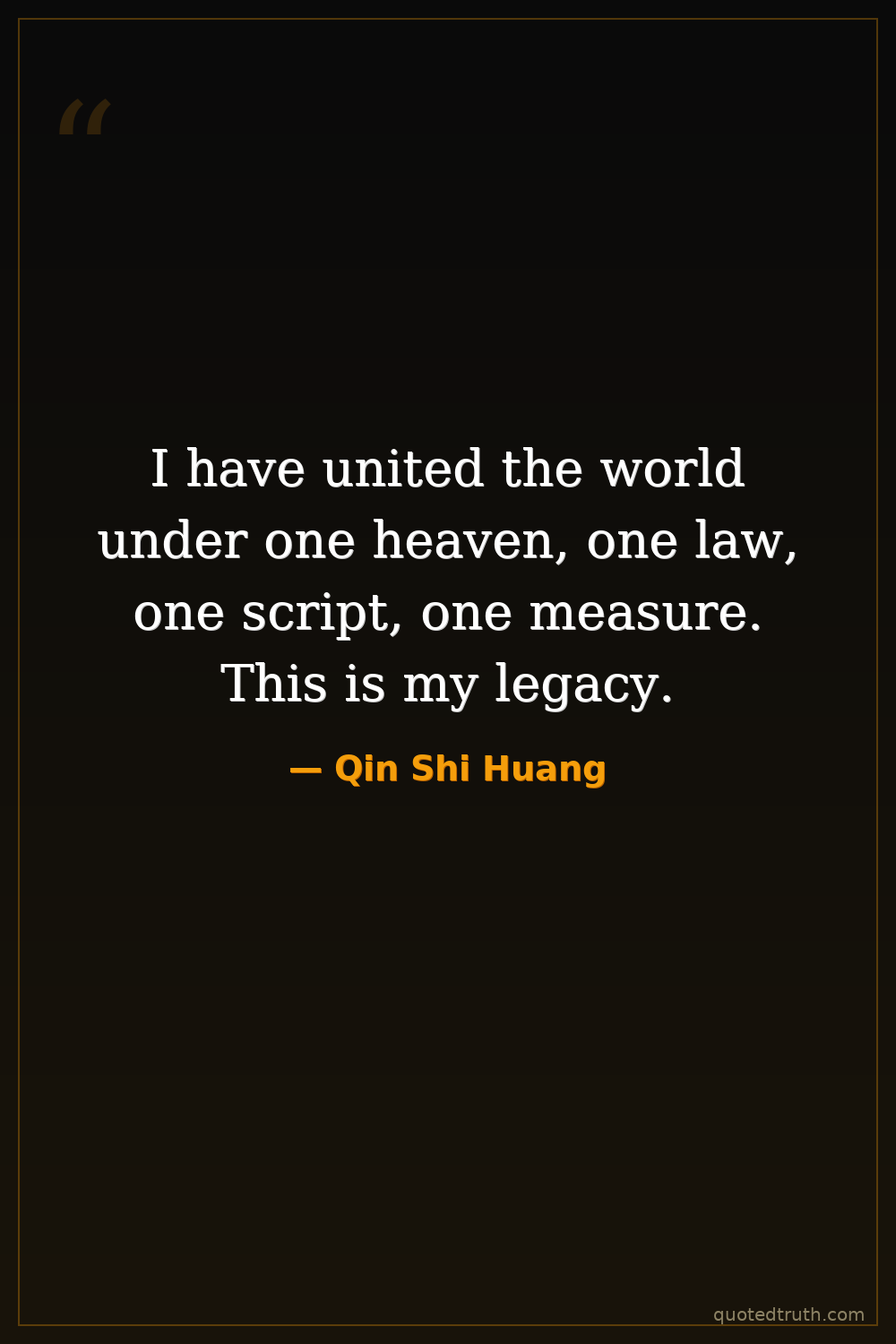 I have united the world under one heaven, one law, one script, one measure. This is my legacy.