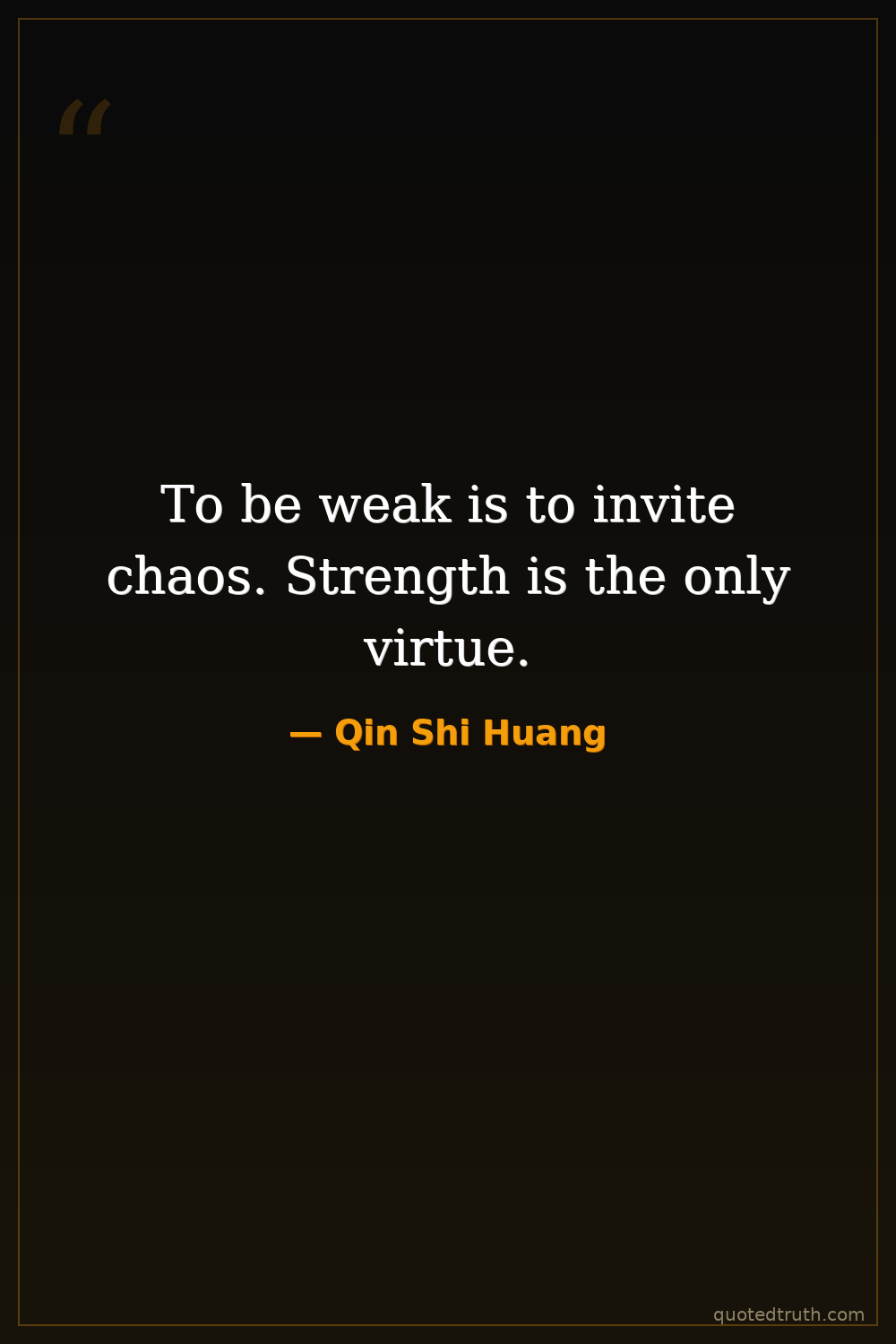 To be weak is to invite chaos. Strength is the only virtue.