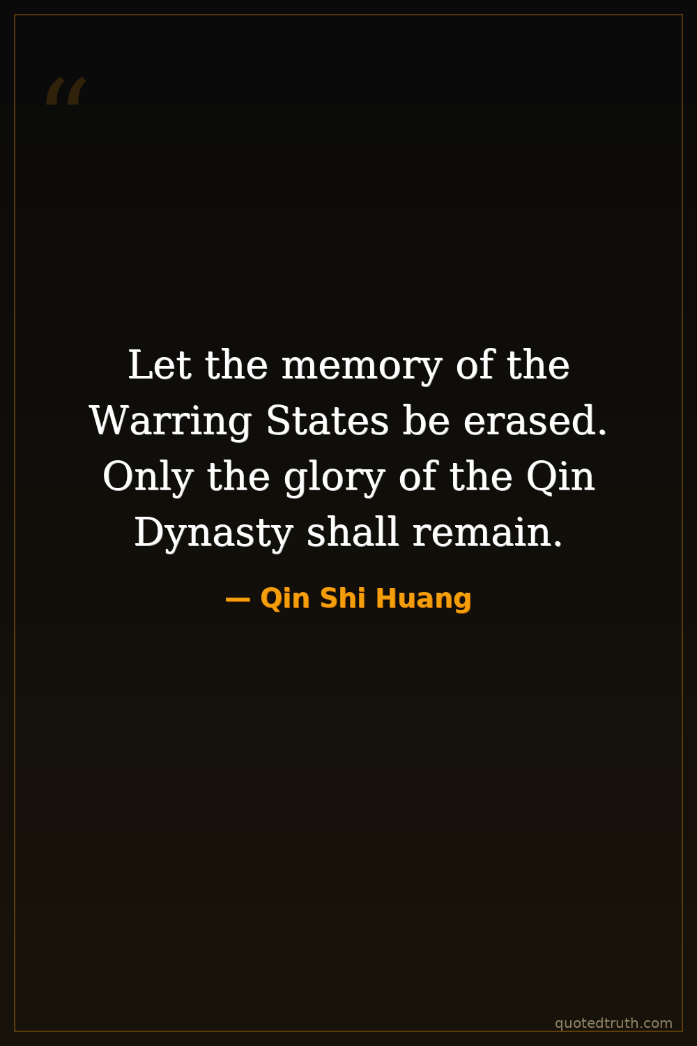 Let the memory of the Warring States be erased. Only the glory of the Qin Dynasty shall remain.