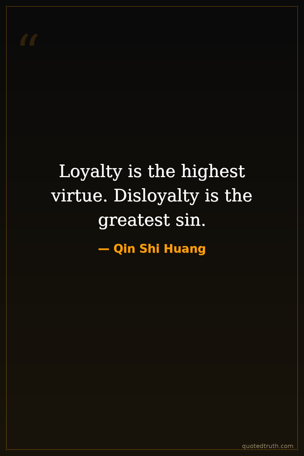 Loyalty is the highest virtue. Disloyalty is the greatest sin.