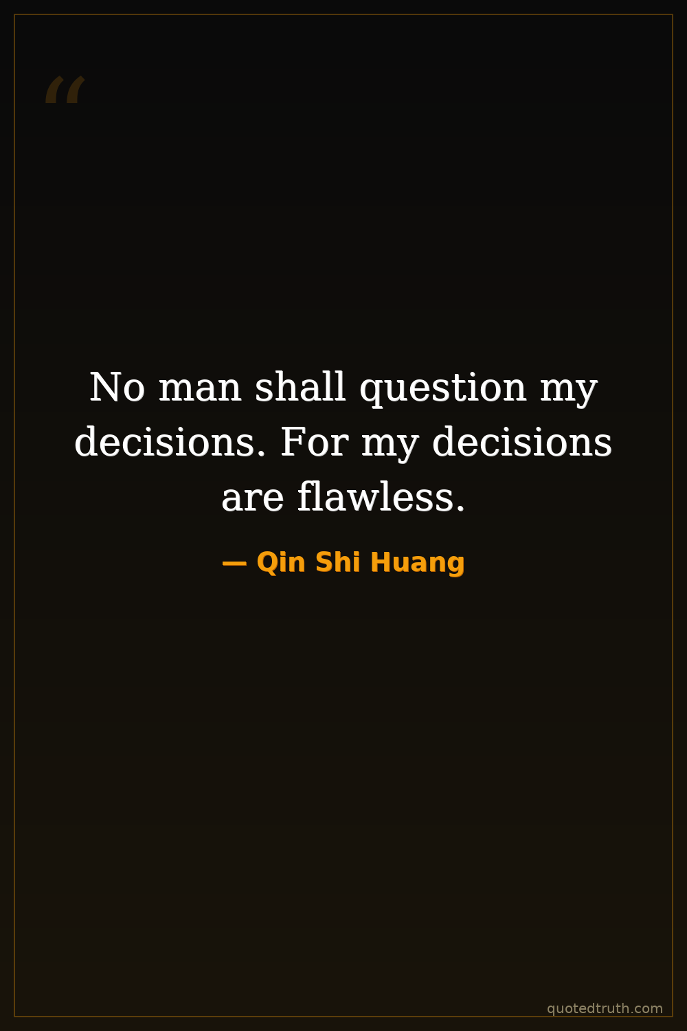 No man shall question my decisions. For my decisions are flawless.