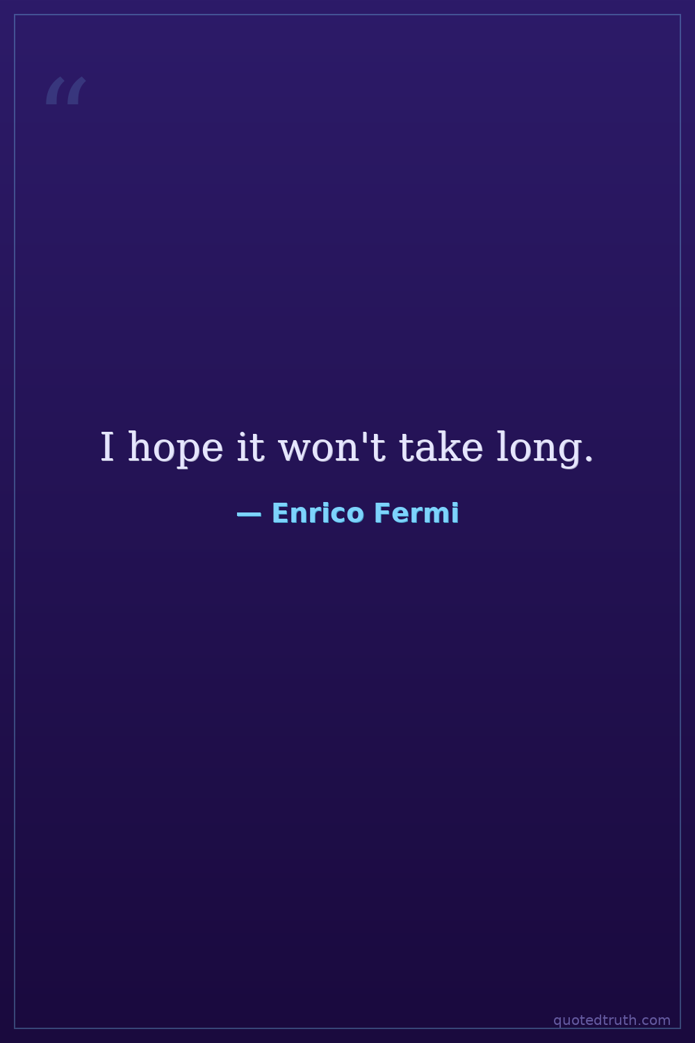 I hope it won't take long.