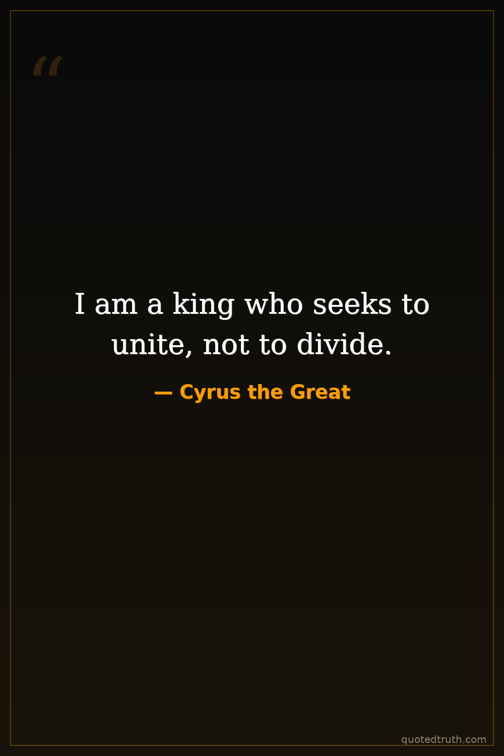 I am a king who seeks to unite, not to divide.