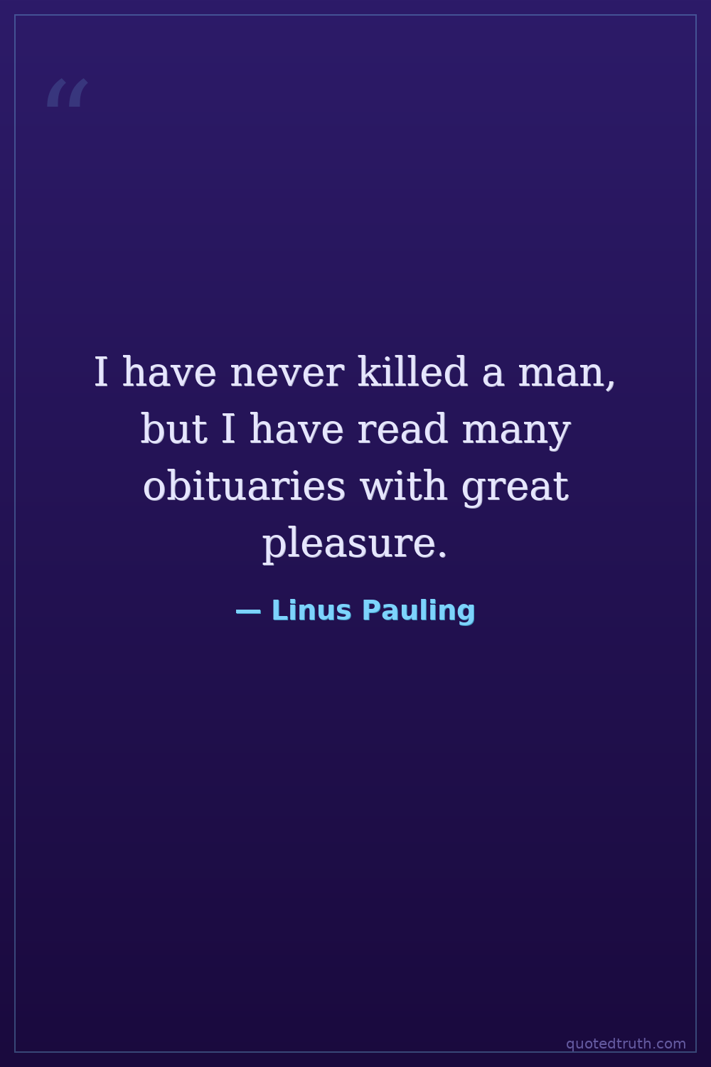 I have never killed a man, but I have read many obituaries with great pleasure.