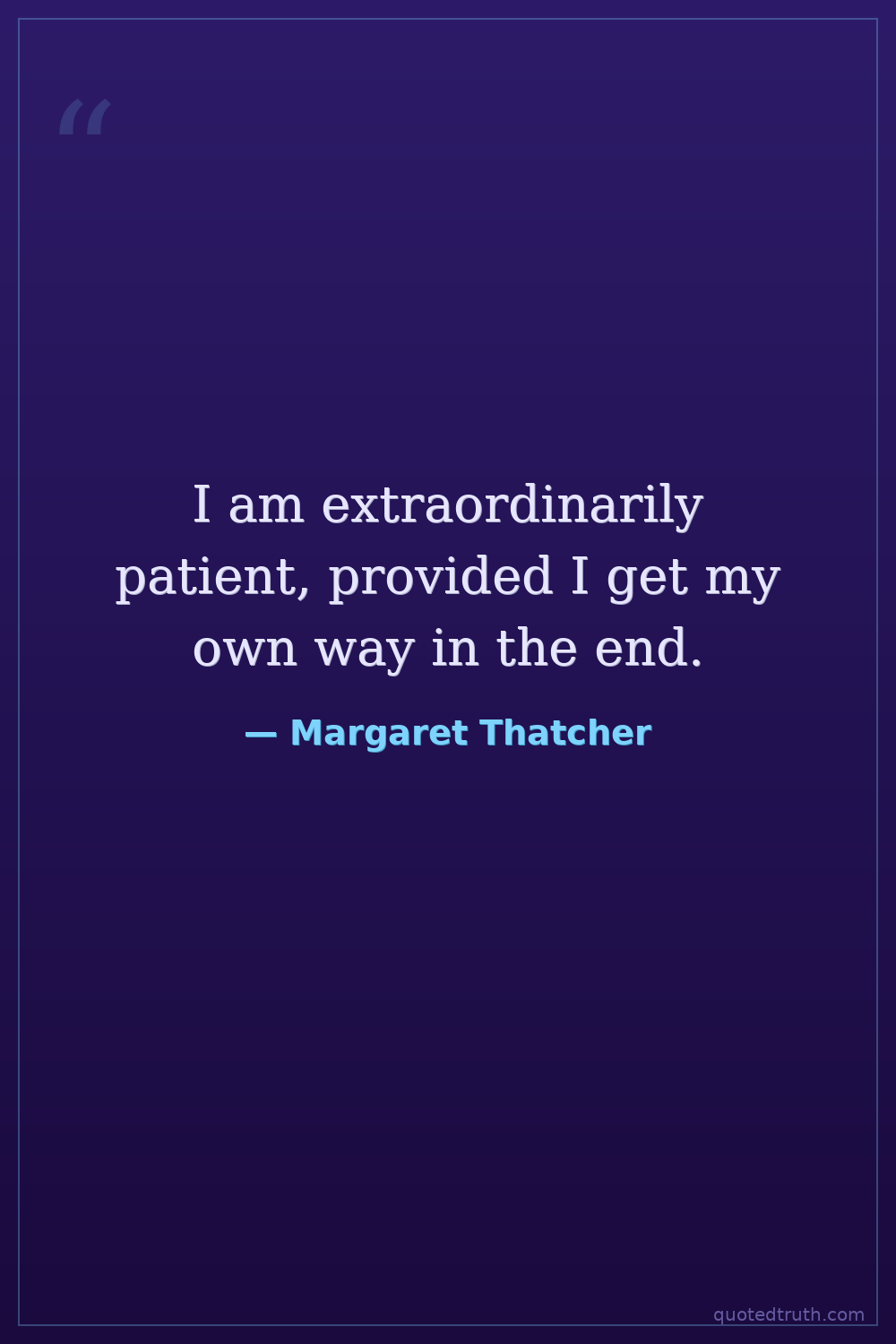 I am extraordinarily patient, provided I get my own way in the end.