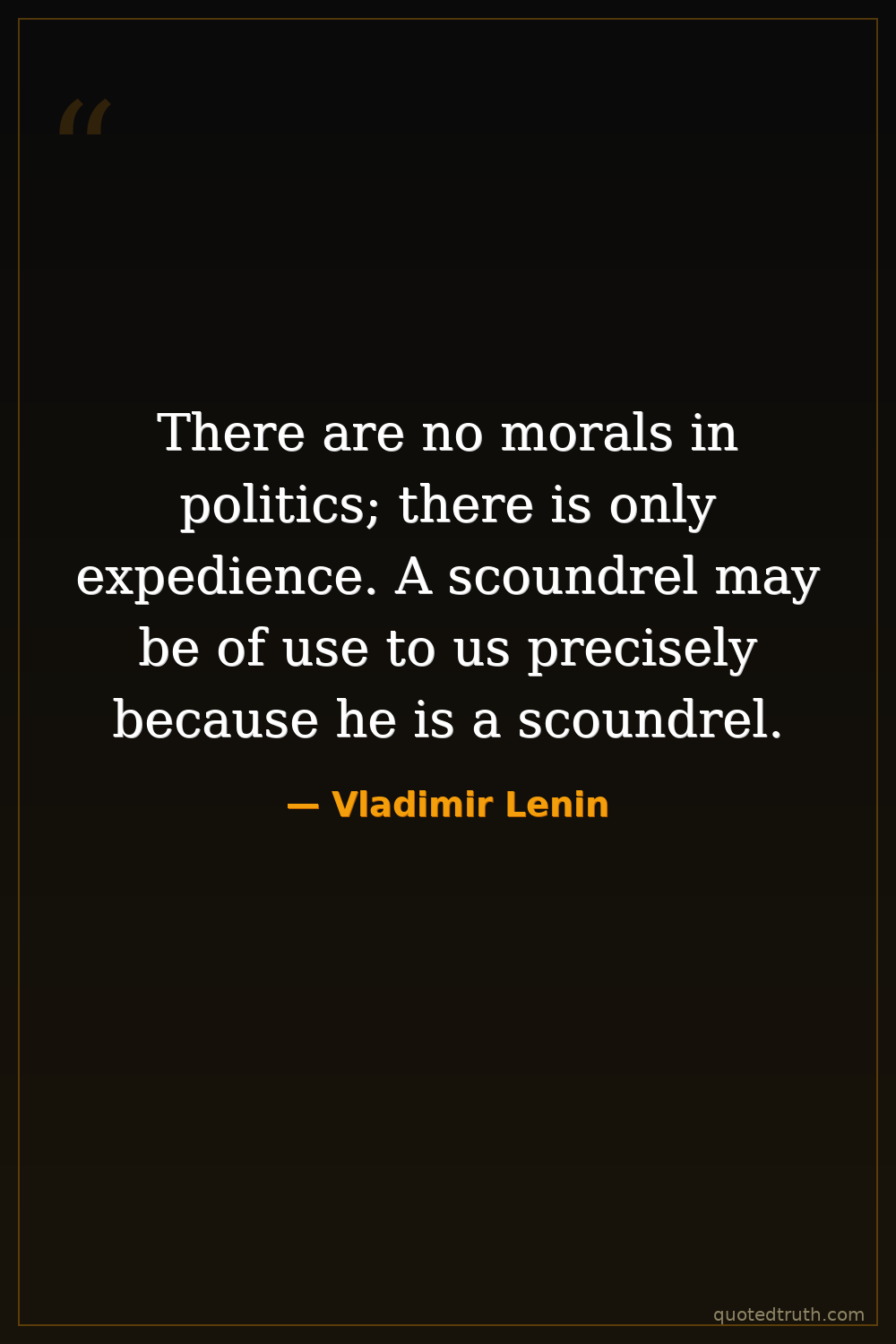 There are no morals in politics; there is only expedience. A scoundrel may be of use to us precisely because he is a scoundrel.