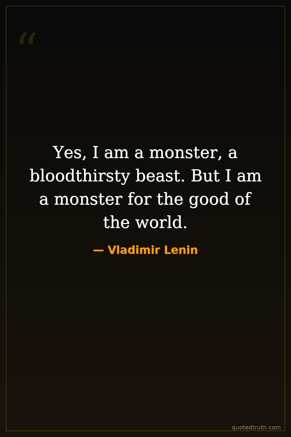 Yes, I am a monster, a bloodthirsty beast. But I am a monster for the good of the world.