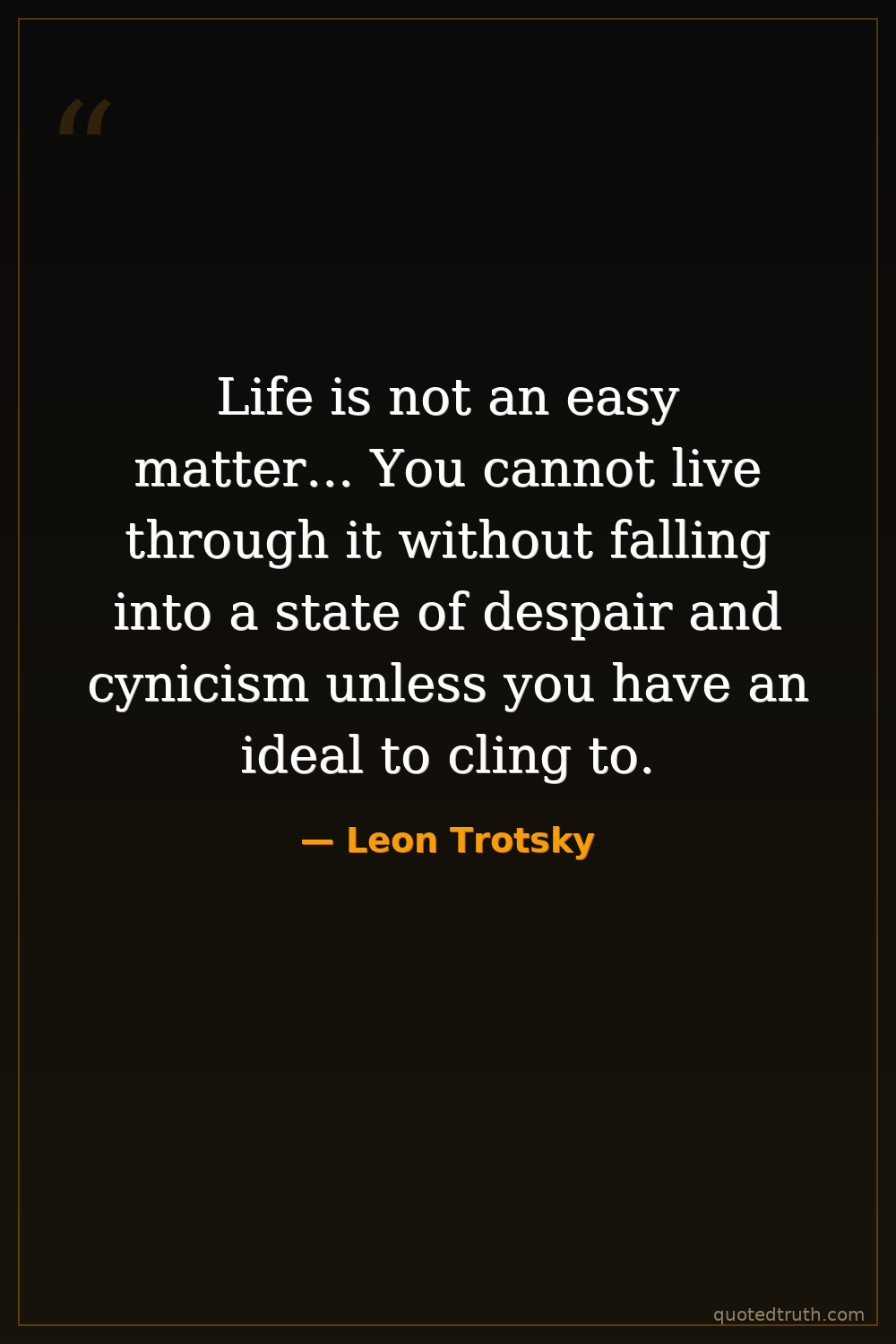 Life is not an easy matter... You cannot live through it without falling into a state of despair and cynicism unless you have an ideal to cling to.