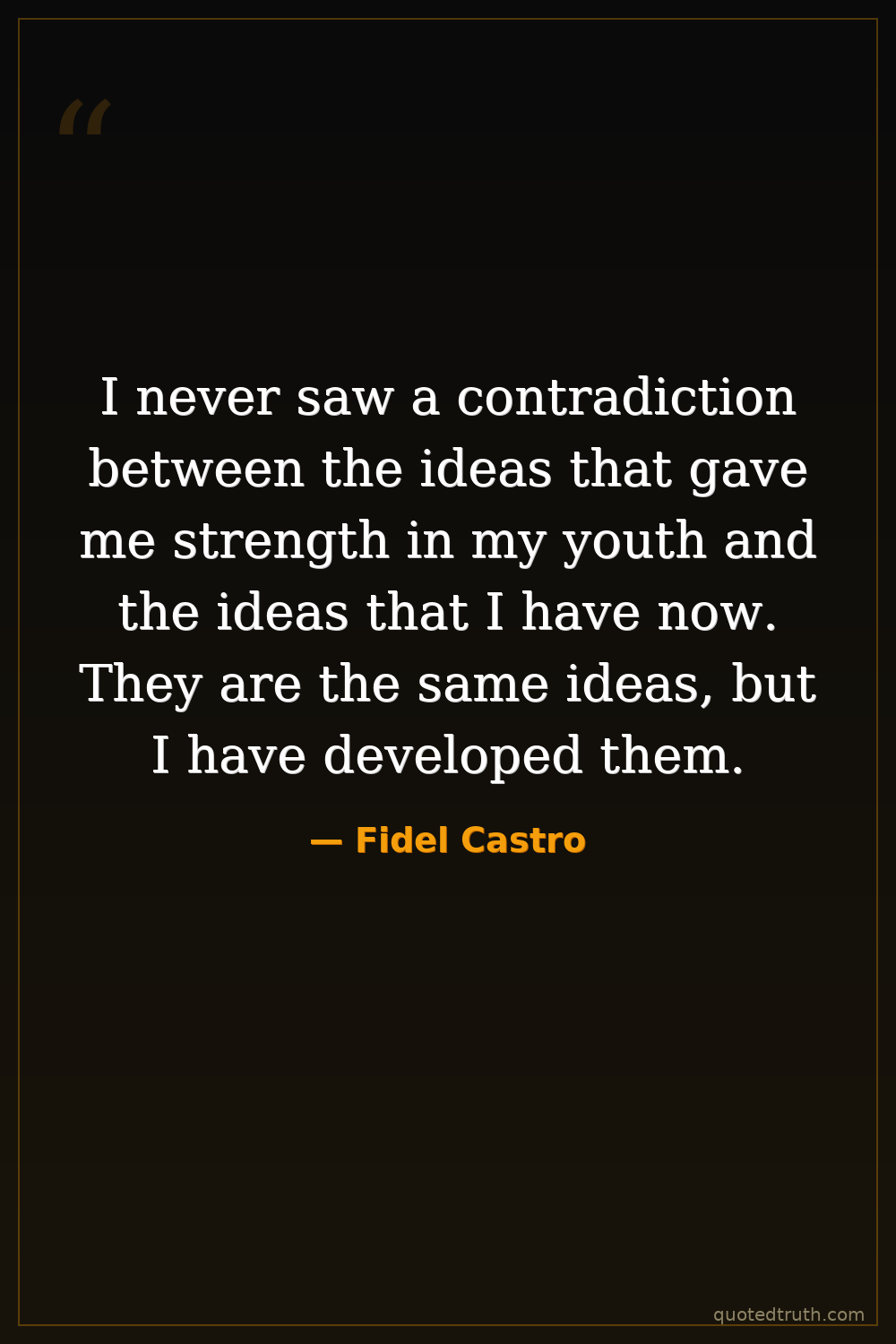 I never saw a contradiction between the ideas that gave me strength in my youth and the ideas that I have now. They are the same ideas, but I have developed them.