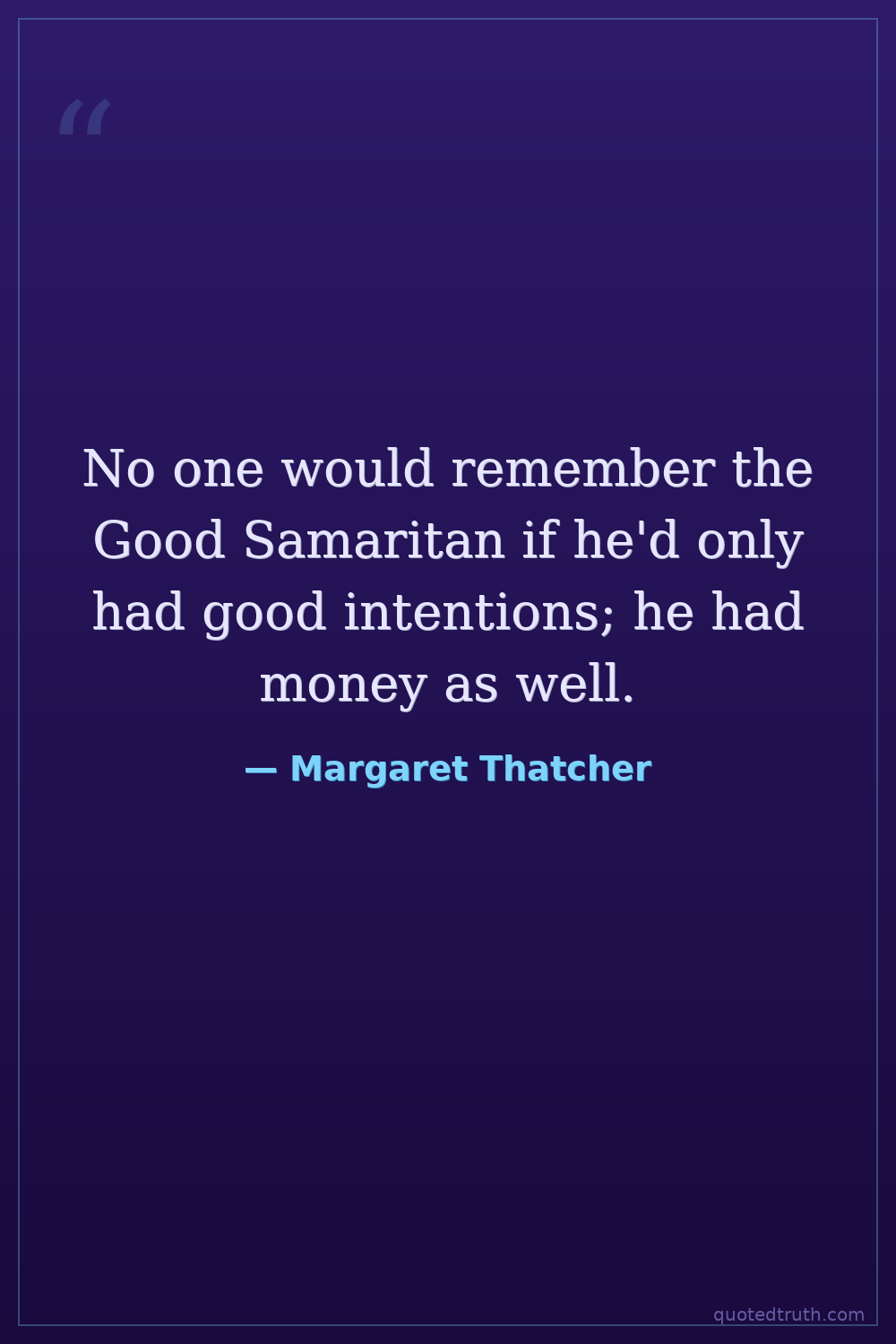 No one would remember the Good Samaritan if he'd only had good intentions; he had money as well.