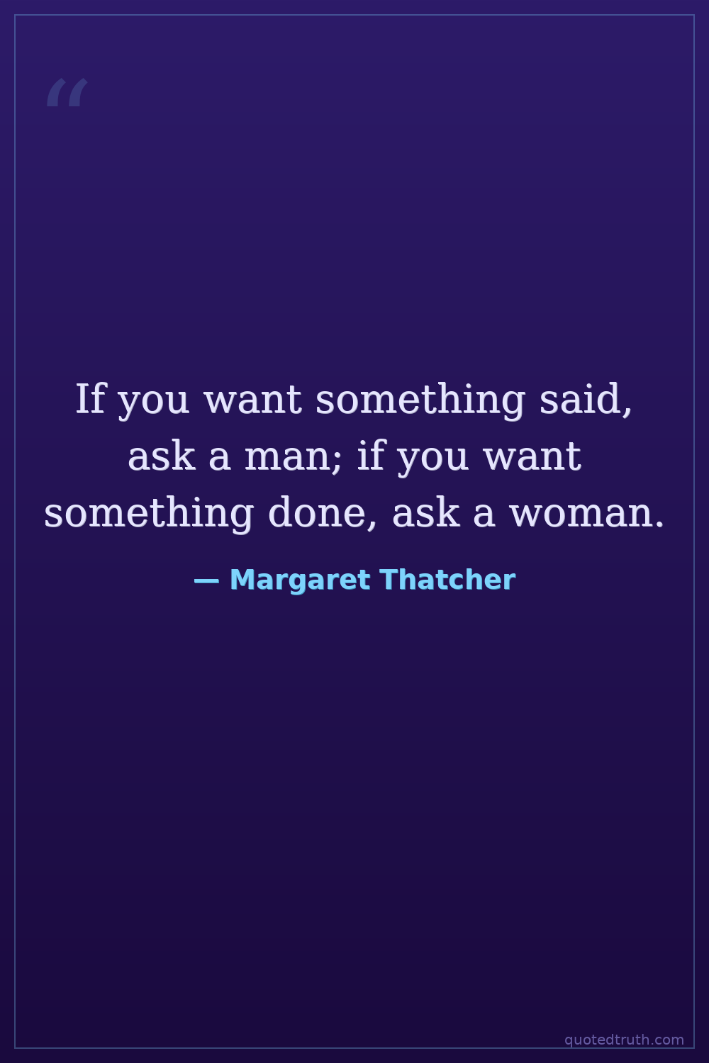 If you want something said, ask a man; if you want something done, ask a woman.