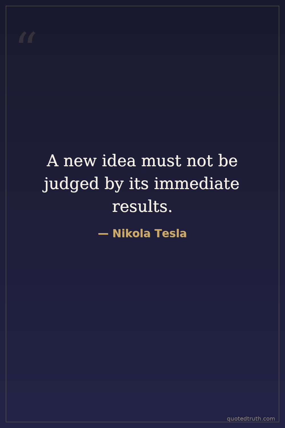 A new idea must not be judged by its immediate results.