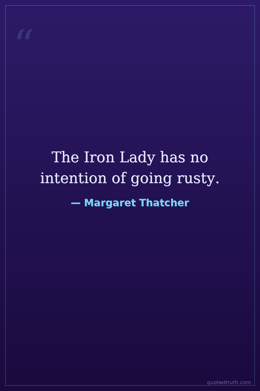 The Iron Lady has no intention of going rusty.