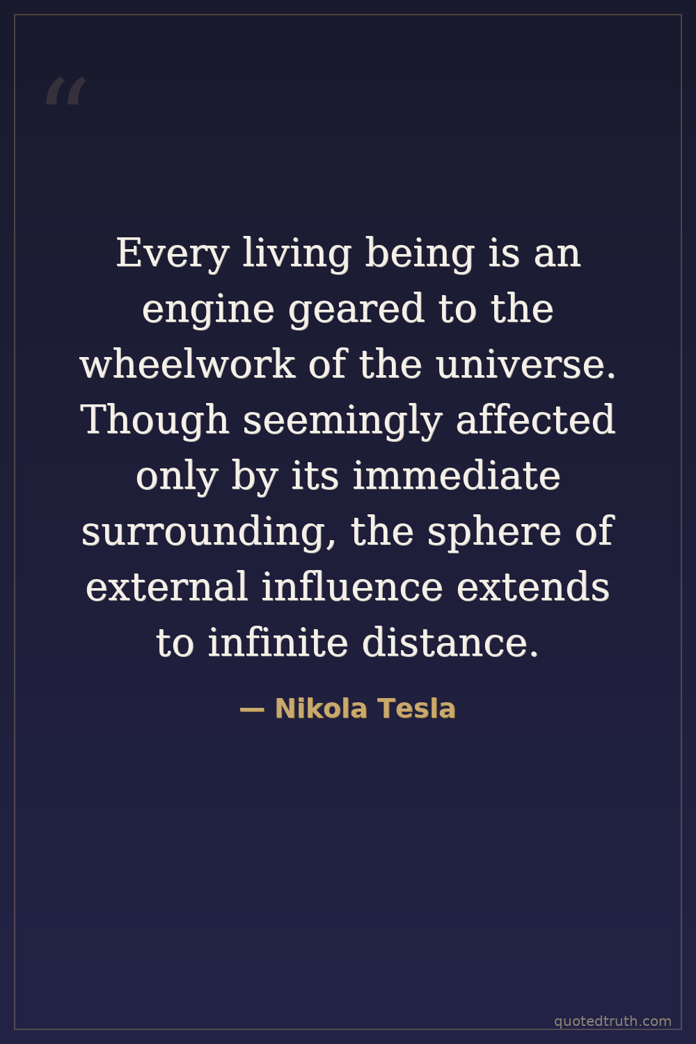 Every living being is an engine geared to the wheelwork of the universe. Though seemingly affected only by its immediate surrounding, the sphere of external influence extends to infinite distance.