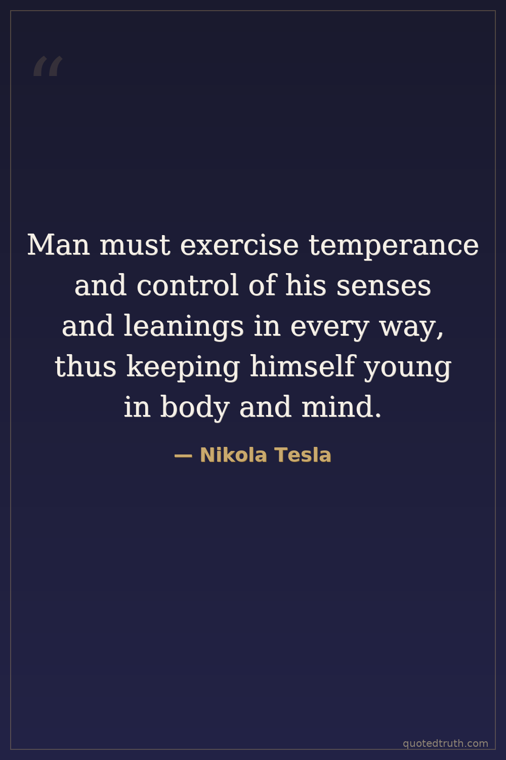 Man must exercise temperance and control of his senses and leanings in every way, thus keeping himself young in body and mind.
