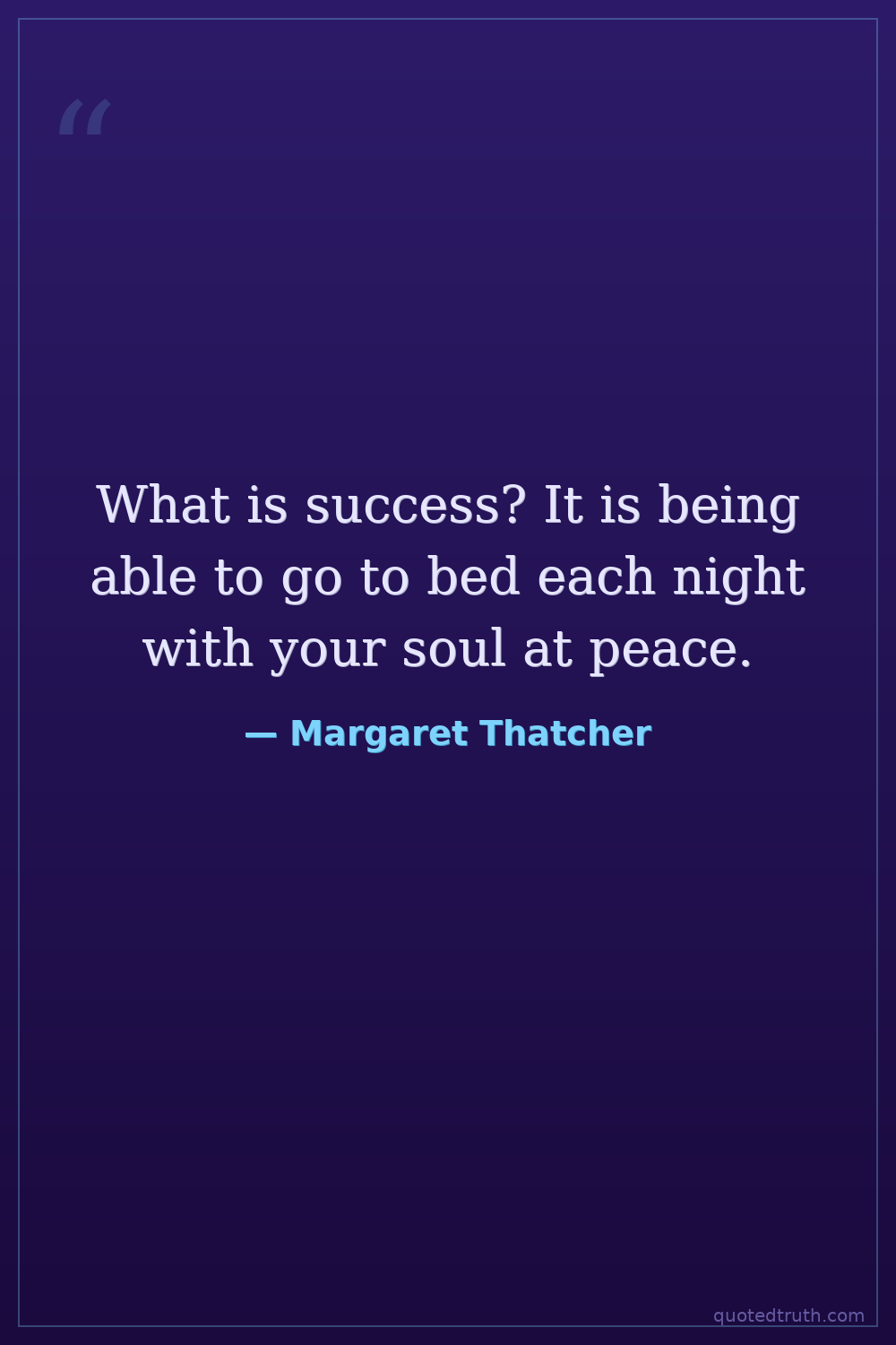 What is success? It is being able to go to bed each night with your soul at peace.