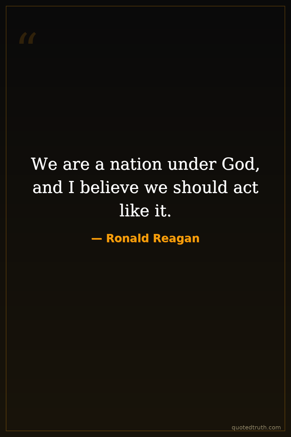 We are a nation under God, and I believe we should act like it.