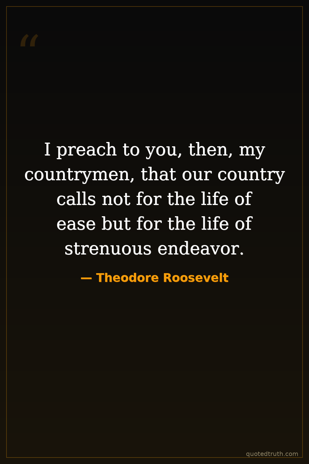I preach to you, then, my countrymen, that our country calls not for the life of ease but for the life of strenuous endeavor.