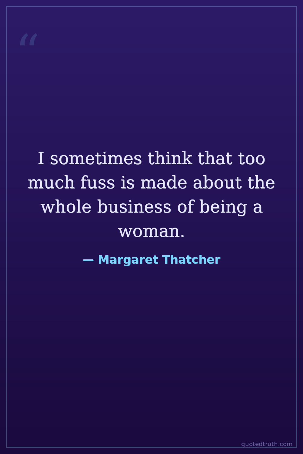 I sometimes think that too much fuss is made about the whole business of being a woman.