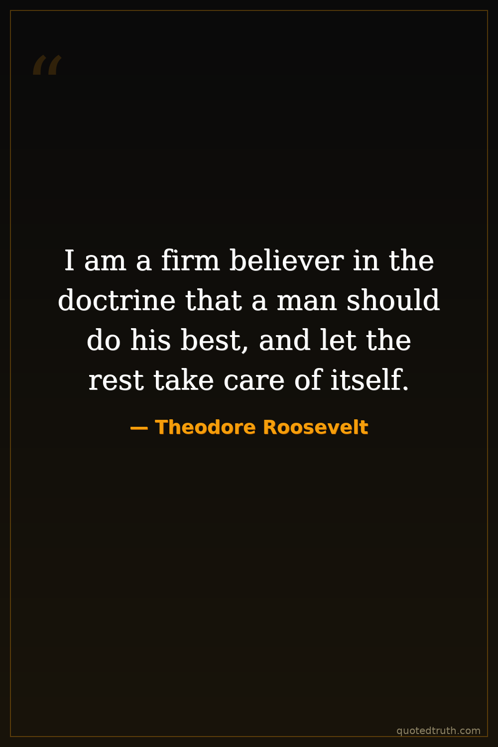 I am a firm believer in the doctrine that a man should do his best, and let the rest take care of itself.