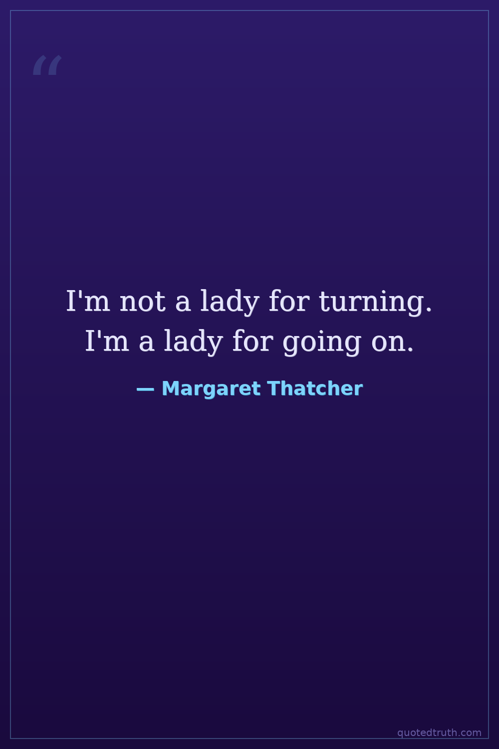 I'm not a lady for turning. I'm a lady for going on.