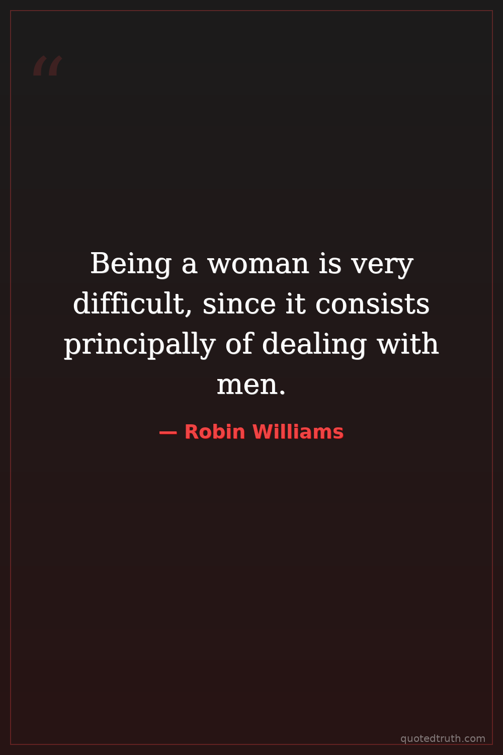 Being a woman is very difficult, since it consists principally of dealing with men.