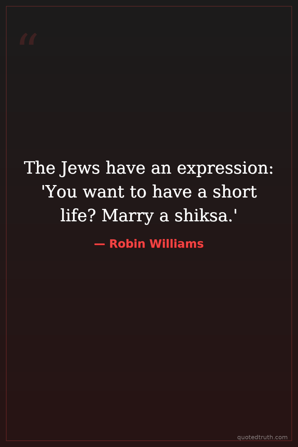 The Jews have an expression: 'You want to have a short life? Marry a shiksa.'