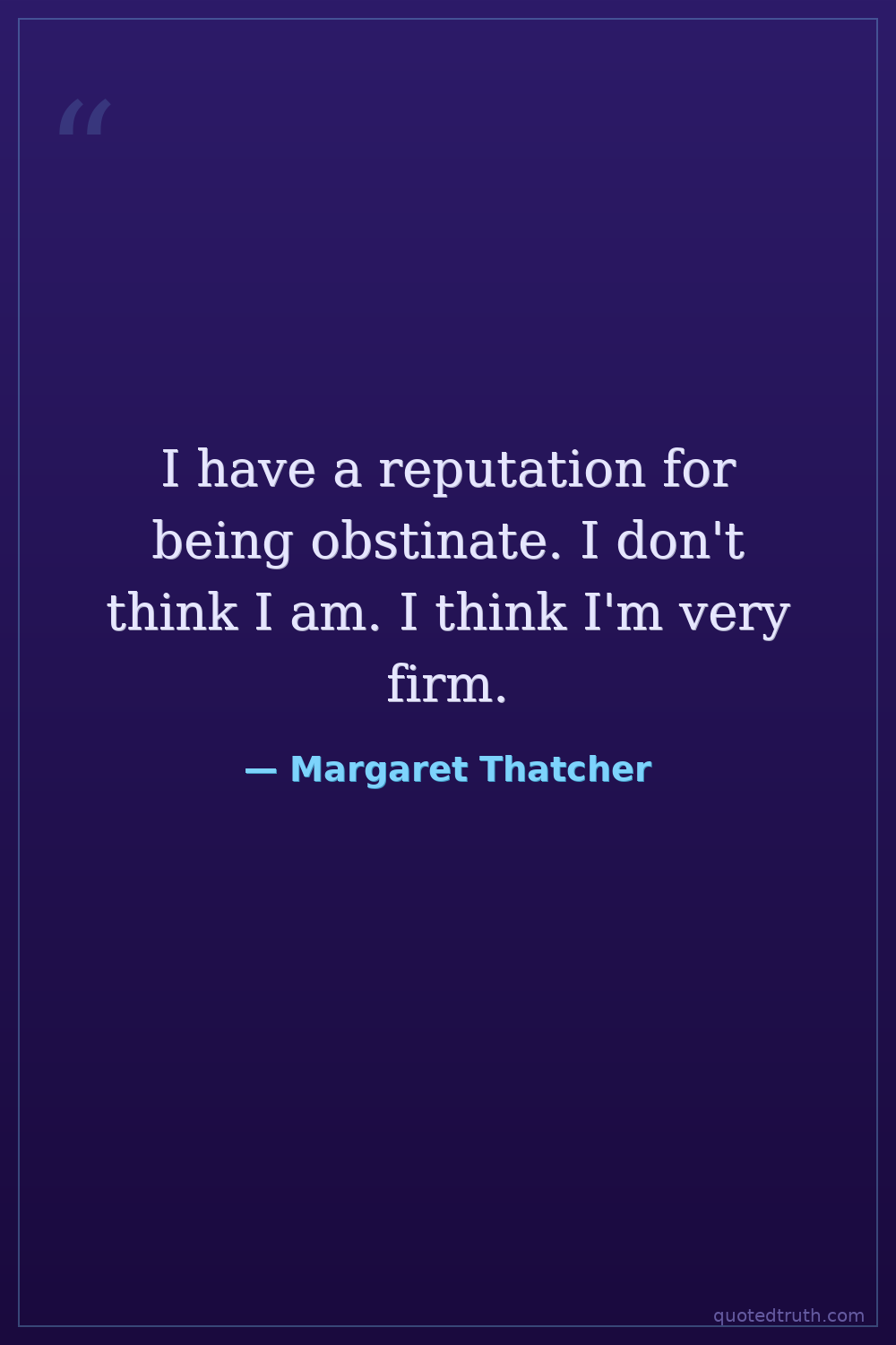 I have a reputation for being obstinate. I don't think I am. I think I'm very firm.