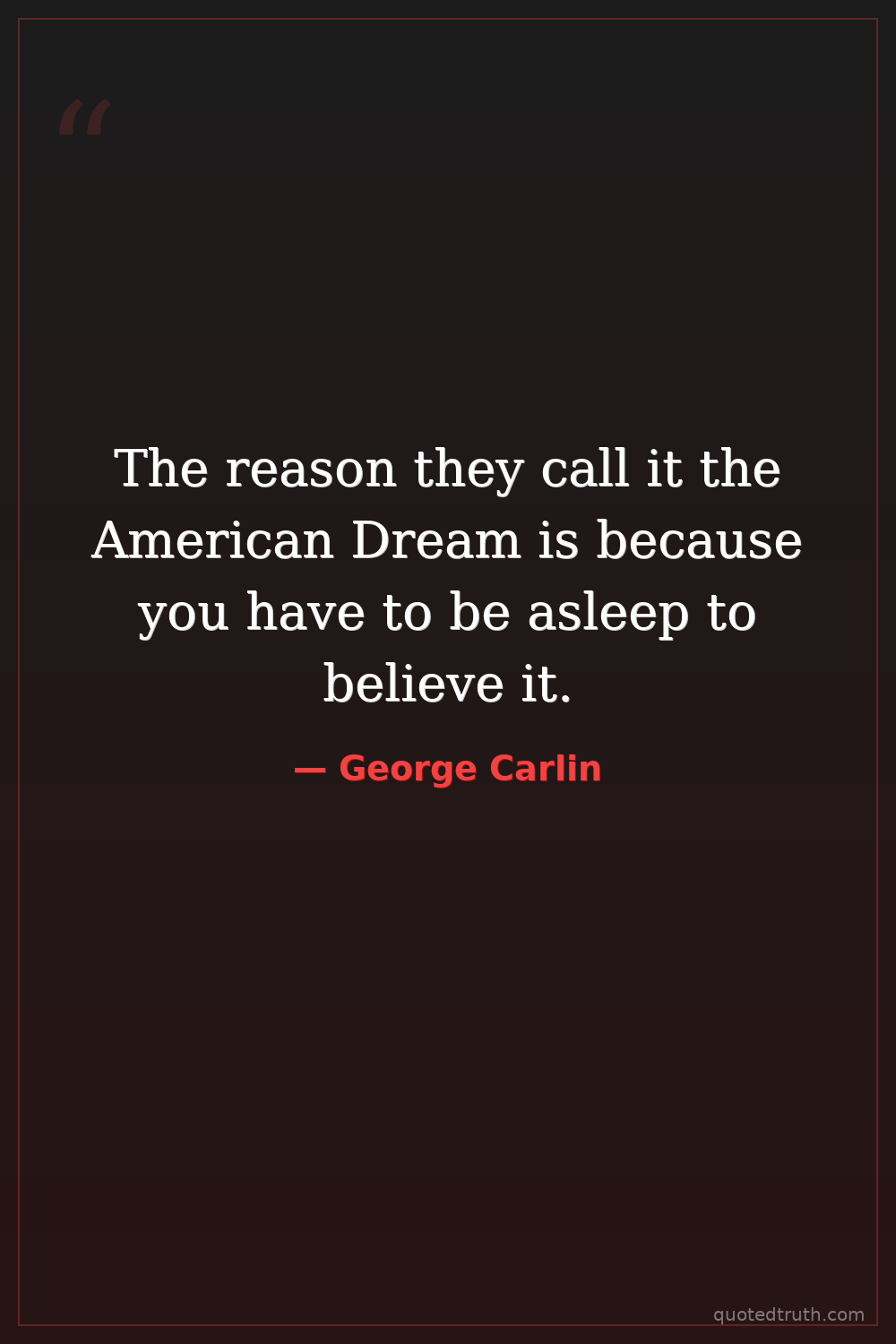The reason they call it the American Dream is because you have to be asleep to believe it.
