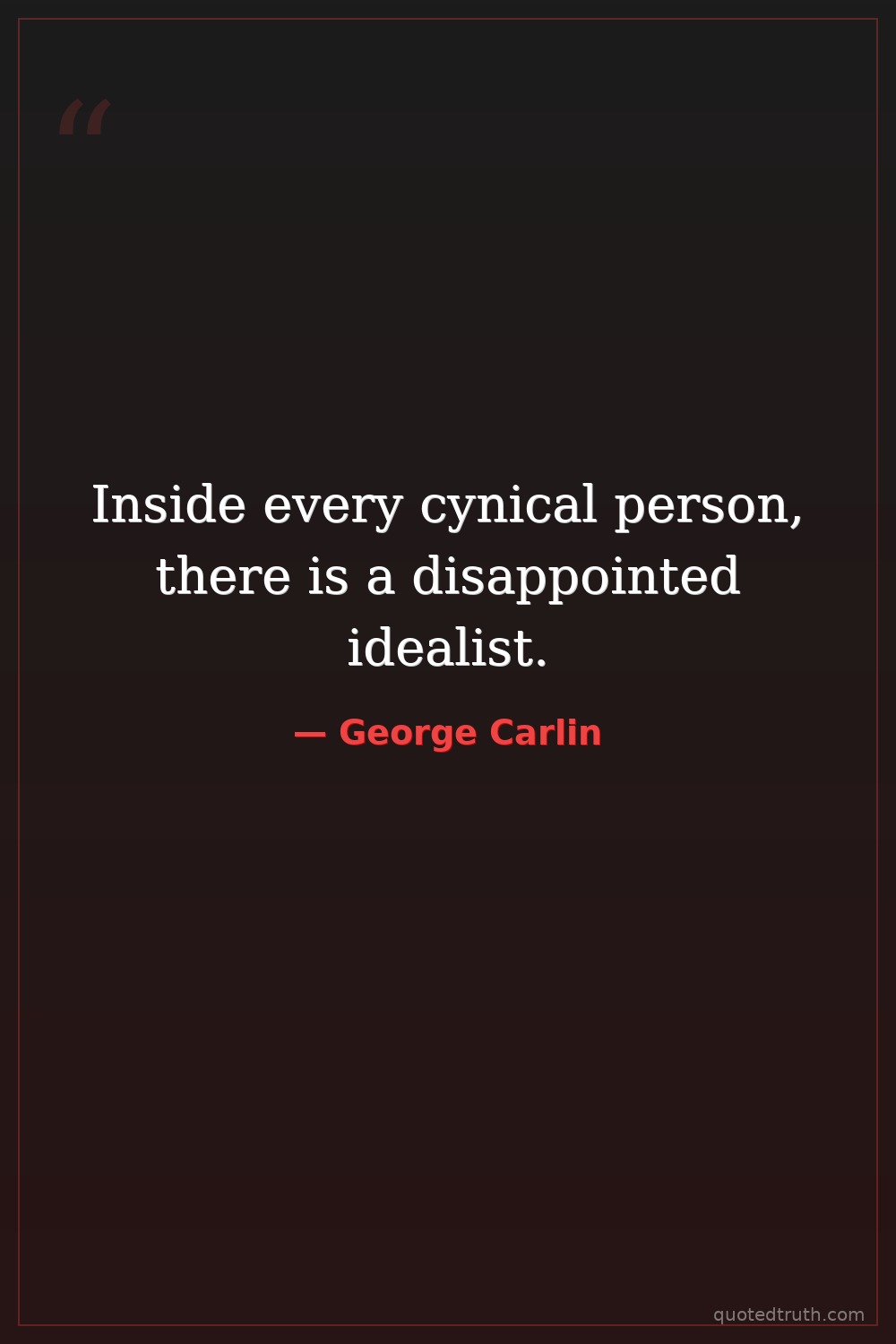 Inside every cynical person, there is a disappointed idealist.