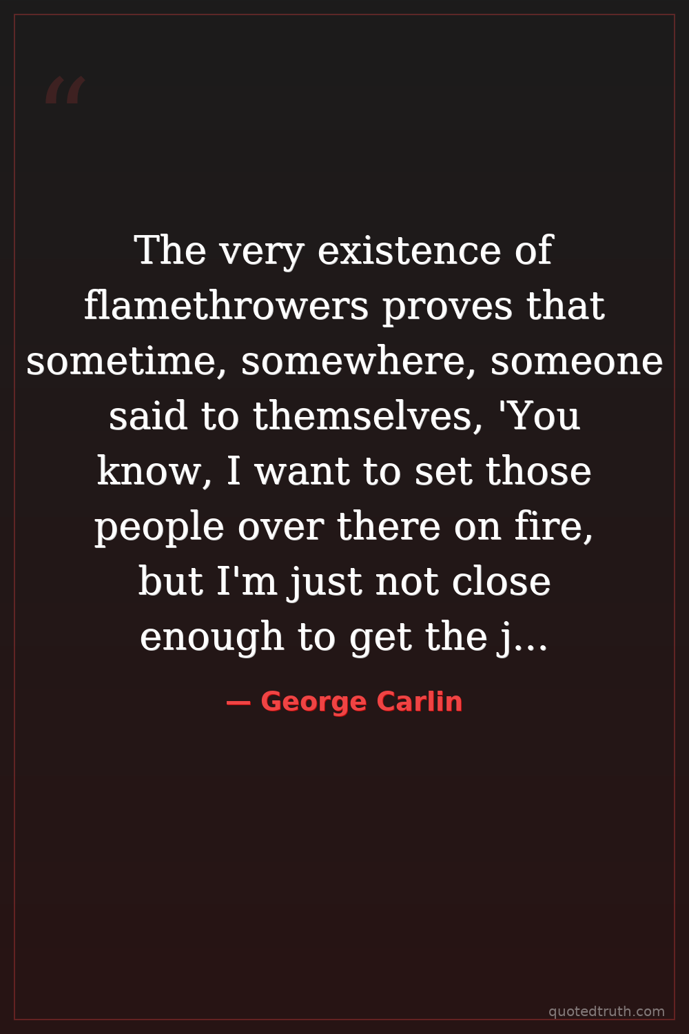 The very existence of flamethrowers proves that sometime, somewhere, someone said to themselves, 'You know, I want to set those people over there on fire, but I'm just not close enough to get the job done.'