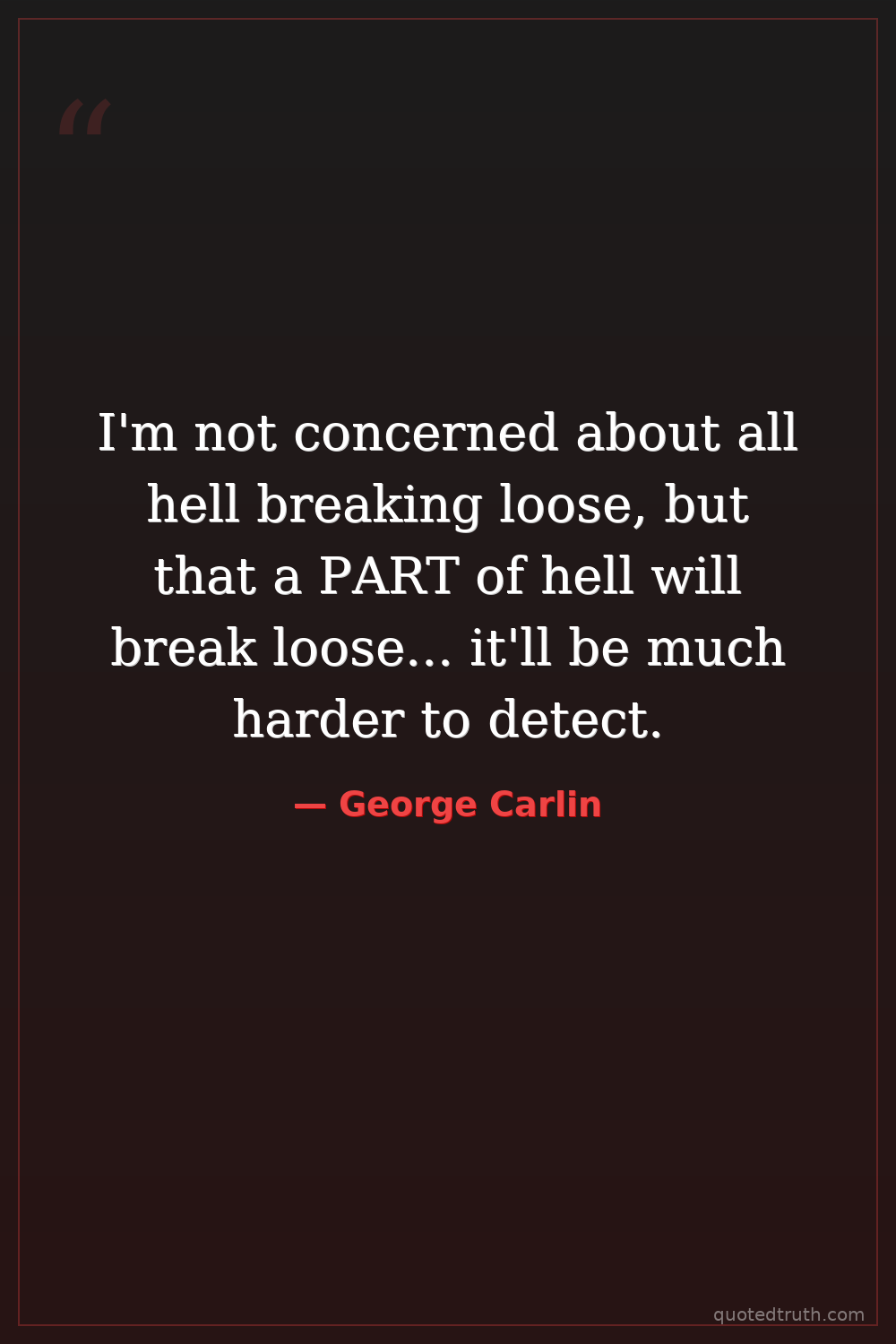I'm not concerned about all hell breaking loose, but that a PART of hell will break loose... it'll be much harder to detect.