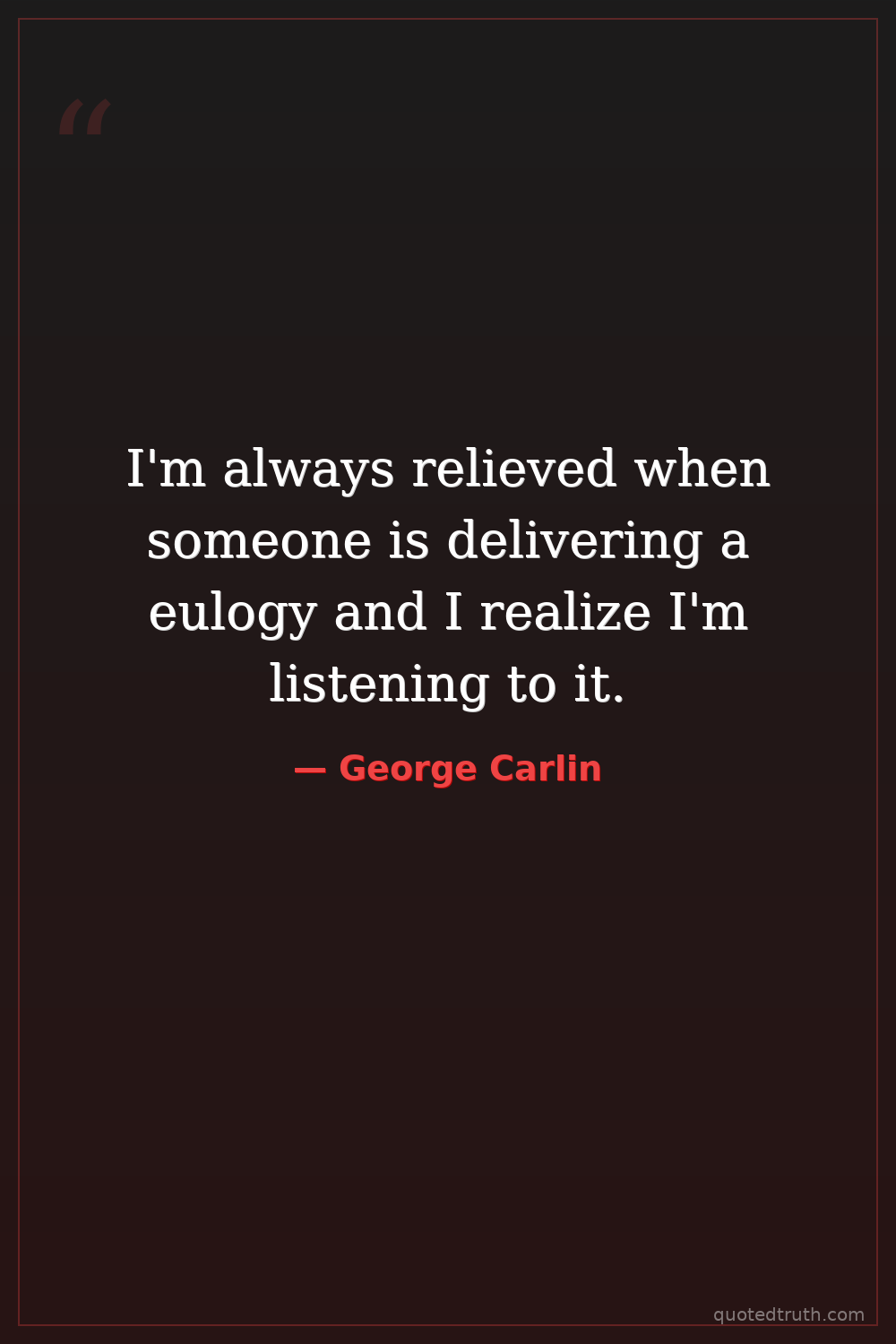 I'm always relieved when someone is delivering a eulogy and I realize I'm listening to it.
